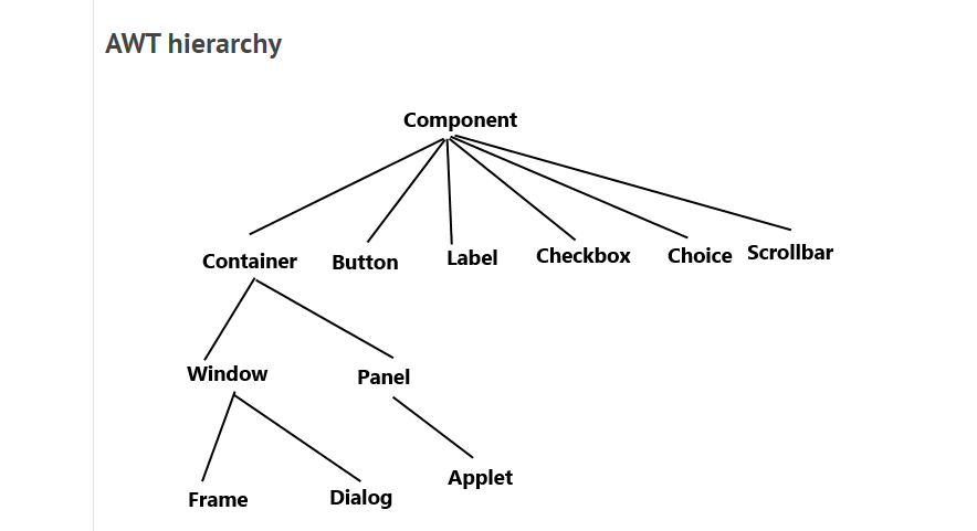 AWT stands for Abstract Window Toolkit. It is a platform dependent API for creating Graphical User Interface (GUI) for java programs. Why AWT is platform